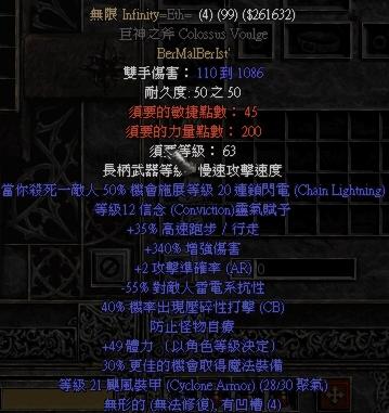 50% 概率当你杀死敌人时施放出 20 级 Chain Lightning(连锁闪电)