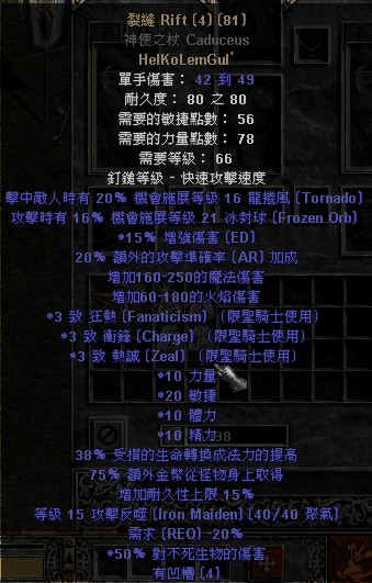 +10% 防火上限 (盾) | 每次命中偷取 14% Mana (武器)